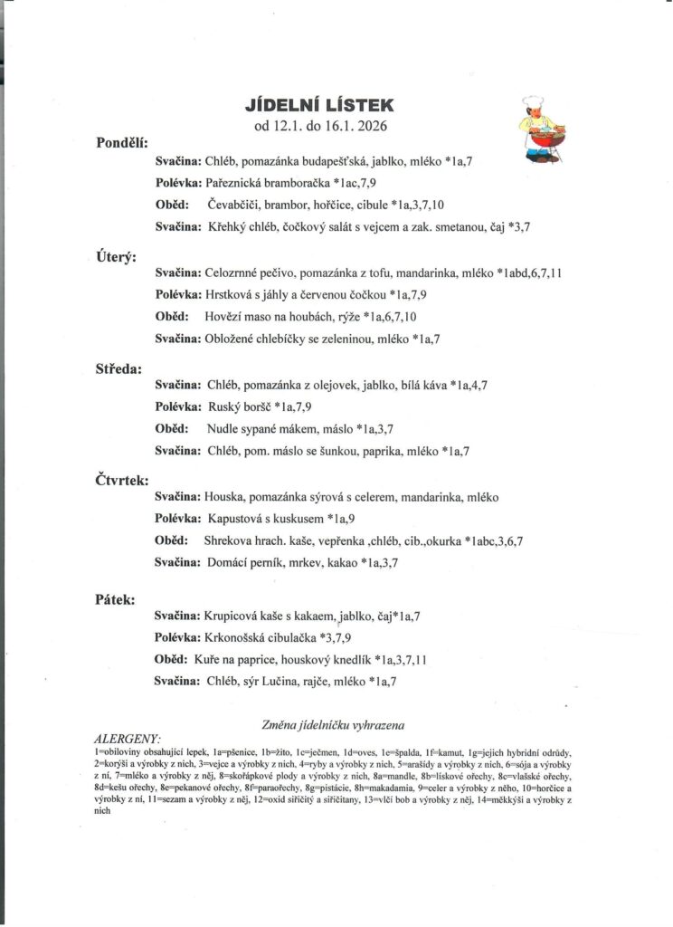 1=obiloviny obsahující lepek, 1a=pšenice, 1b=žito, 1c=ječmen, 1d=oves, 1e=špalda, 1f=kamut, 1g=jejich hybridní odrůdy, 2=korýši a výrobky z nich, 3=vejce a výrobky z nich, 4=ryby a výrobky z nich, 5=arašídy a výrobky z nich, 6=sója a výrobky z ní, 7=mléko a výrobky z něj, 8=skořápkové plody a výrobky z nich, 8a=mandle, 8b=lískové ořechy, 8c=vlašské ořechy, 8d=kešu ořechy, 8e=pekanové ořechy, 8f=paraořechy, 8g=pistácie, 8h=makadamia, 9=celer a výrobky z něho, 10=horčice a výrobky z ní, 11=sezam a výrobky z něj, 12=oxid siřičitý a siřičitany, 13=vlčí bob a výrobky z něj, 14=měkkýši a výrobky z nich